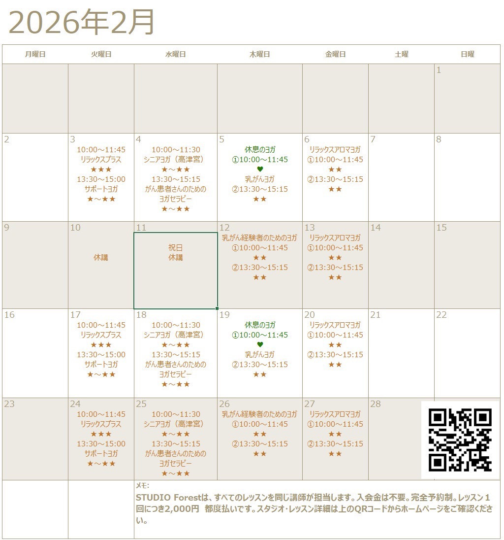 2月のレッスンスケジュール